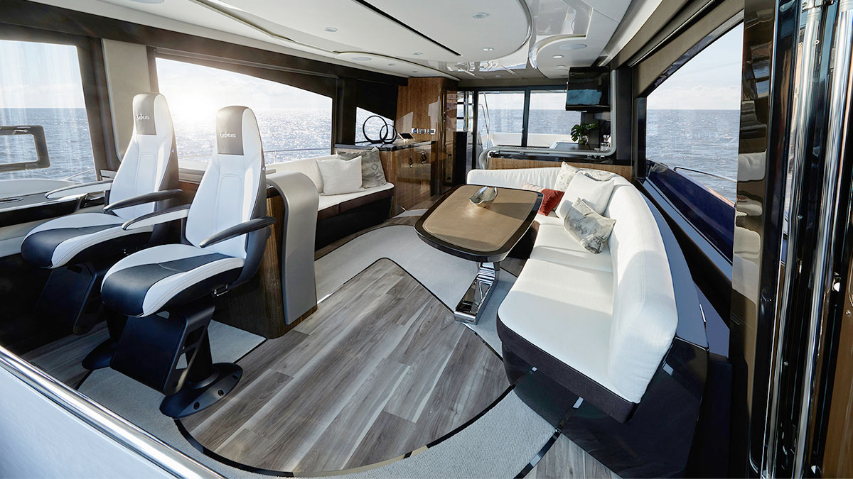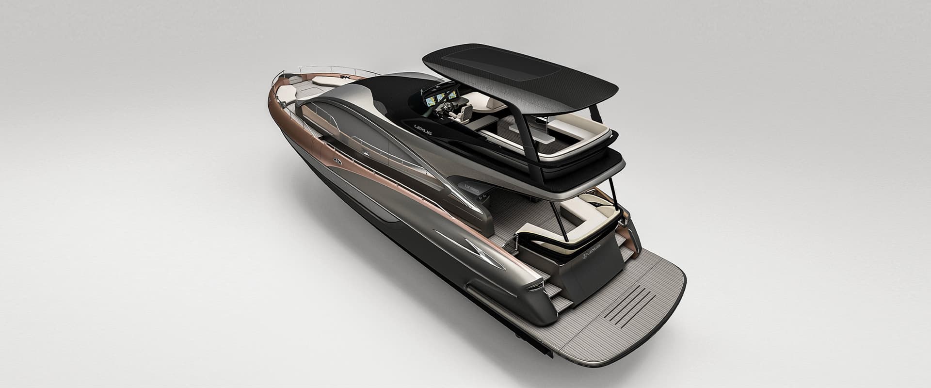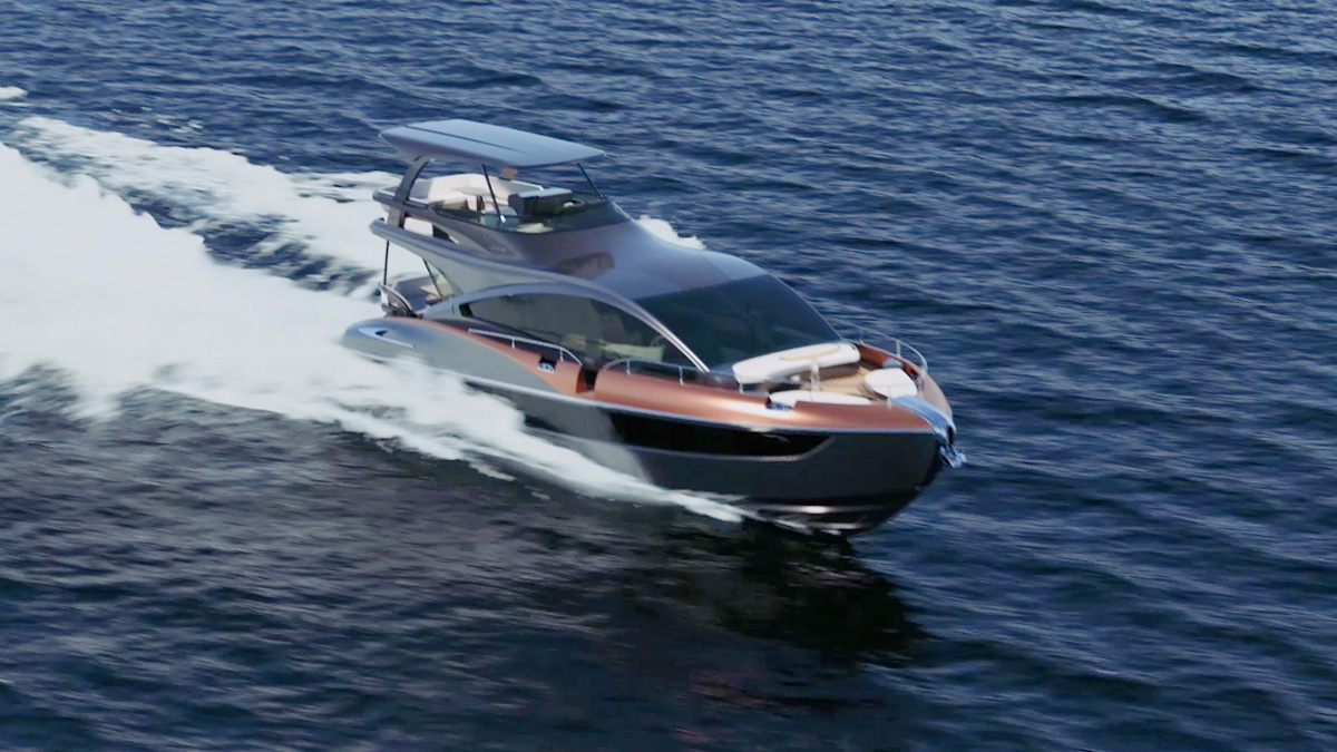 The rising hips of the yacht were inspired by the Lexus LC’s rear quarter for a distinctly striking look.