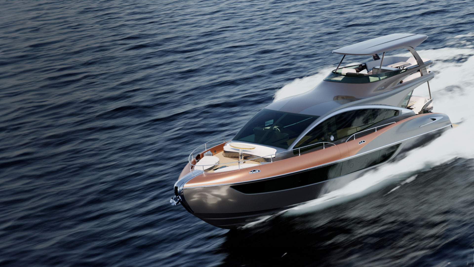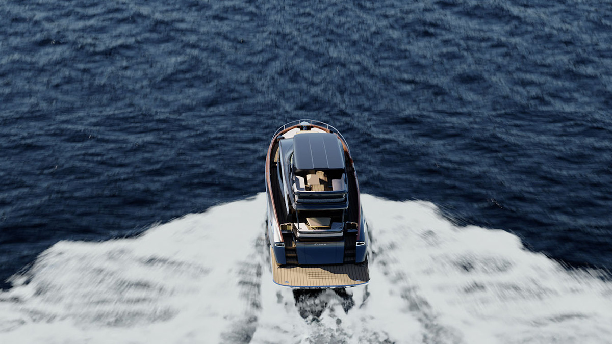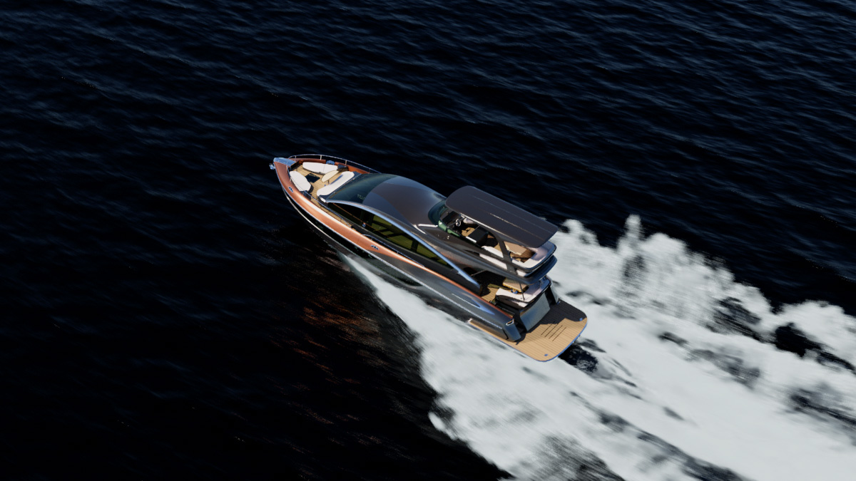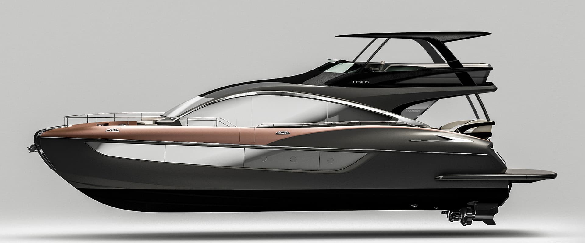 The rising hips of the yacht were inspired by the Lexus LC’s rear quarter for a distinctly striking look.